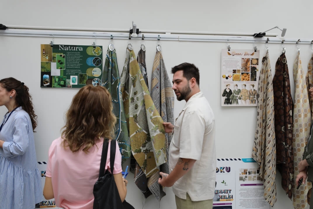 Bursa’da gerçekleşen Uygulamalı Eğitim Süreci’nin finalistlerin kumaş tasarımları kumaş üreticisi firmalarda üretilmiştir.